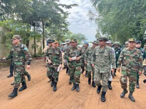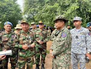 នាព្រឹកថ្ងៃចន្ទ ទី22 ខែកញ្ញា ឆ្នាំ2025នេះ លោកជំទាវ ឧត្តមសេនីយ៍ឯក ម៉ាលី សុជាតា អ្នកនាំពាក្យក្រសួងការពារជាតិ នៃព្រះរាជាណាចក្រកម្ពុជា បានសម្របសម្រួលជូនក្រុមអ្នកសង្កេតការណ៍អន្តរកាល (IOT) អញ្ជើញចុះពិនិត្យទីតាំងជាក់ស្តែង នៅភូមិជោគជ័យ ឃុំអូរបីជាន់ ស្រុកអូរជ្រៅ ខេត្តបន្ទាយមានជ័យ ដើម្បីសង្កេតការណ៍ ផ្ទៀងផ្ទាត់ និងរាយការណ៍ នូវស្ថានភាពព្រំដែនក្រោយបទឈប់បាញ់ ចូលជាធរមាន។