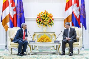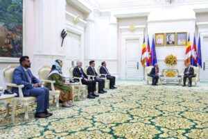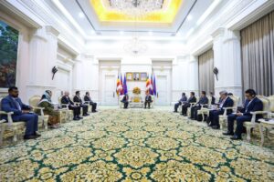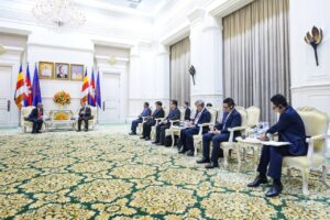នាព្រឹកថ្ងៃព្រហស្បតិ៍ ទី2 ខែតុលា ឆ្នាំ2025នេះ សម្តេចមហាបវរធិបតី ហ៊ុន ម៉ាណែត នាយករដ្ឋមន្ត្រី នៃកម្ពុជា បានអនុញ្ញាតឱ្យគណៈប្រតិភូសហព័ន្ធសភាសន្តិភាពពិភពលោក នៃ សភាម៉ាឡេស៊ី (Parliamentary Federation for World Peace-PFWP) ដឹកនាំដោយលោកបណ្ឌិត YB Datuk Wira Mohd Hatta Bin Md Ramli សមាជិកព្រឹទ្ធសភាម៉ាឡេស៊ី ជួបសម្តែងការគួរសម និងពិភាក្សាការងារ នៅវិមានសន្តិភាព៕