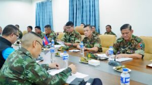 ៣. ពិភាក្សាការងារត្រៀមរៀបចំកិច្ចប្រជុំគណៈកម្មាធិការព្រំដែនថ្នាក់យោធភូមិភាគ កម្ពុជា-ថៃ (RBC) ដែលគ្រោងនឹងប្រព្រឹត្តទៅនៅថ្ងៃទី១៥ ដល់ថ្ងៃទី១៧ ខែតុលា ឆ្នាំ២០២៥ ខាងមុខនេះ។