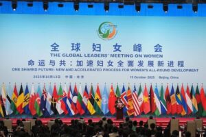 ក្នុងកិច្ចប្រជុំថ្នាក់ដឹកនាំសកលស្តីពីស្រ្តីដែលបើកធ្វើនៅក្រុងប៉េកាំងកាលពីថ្ងៃទី១៣ខែតុលា លោក Xi Jinping ប្រធានរដ្ឋចិនបានអញ្ជើញចូលរួមពិធីសម្ពោធបើកនិងថ្លែងសុន្ទរកថាគន្លឹះ ដោយលើកឡើងសំណើ៤ចំណុចអំពីការពន្លឿនដំណើរការថ្មីនៃការអភិវឌ្ឍដោយគ្រប់ជ្រុងជ្រោយរបស់ស្ត្រី ហើយប្រកាសពីវិធានការចំនួន៥ចំណុចរបស់ភាគីចិនក្នុងការគាំទ្រការអភិវឌ្ឍបុព្វហេតុស្ត្រីសកល ។