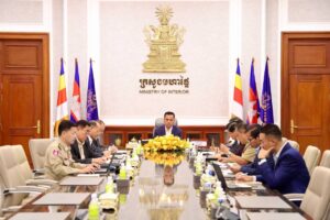 នារសៀលថ្ងៃទី16 ខែតុលា ឆ្នាំ2025នេះ ឯកឧត្តមអភិសន្តិបណ្ឌិត ស សុខា ឧបនាយករដ្ឋមន្ត្រី រដ្ឋមន្ត្រីក្រសួងមហាផ្ទៃ បានអញ្ជើញដឹកនាំកិច្ចប្រជុំស្តាប់របាយការណ៍ស្តីពីការងារសន្តិសុខ ប្រចាំសប្តាហ៍ របស់អគ្គស្នងការដ្ឋាននគរបាលជាតិ នៅសាលប្រជុំវរជ័យ នៃទីស្តីការក្រសួងមហាផ្ទៃ។