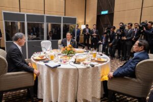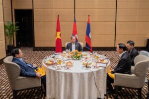 ជាទម្លាប់នៅរាល់ពេលមានកិច្ចប្រជុំកំពូលអាស៊ានថ្នាក់ដឹកនាំនៃប្រទេសទាំងបី កម្ពុជា-ឡាវ-វៀតណាម តែងតែមានជំនួបអាហារពេលព្រឹកការងារ ដើម្បីជួបជជែកពិភាក្សា លើការពង្រឹងទំនាក់ទំនងកិច្ចសហប្រតិបត្តិការ រវាងប្រទេសទាំងបីឱ្យកាន់តែមានភាពល្អប្រសើរបន្ថែមទៀត។ ពីទីក្រុងគូឡាឡាំពួ