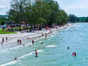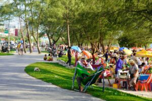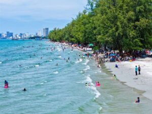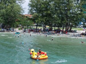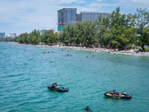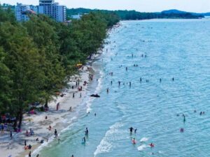 នាថ្ងៃទី2 នៃព្រះរាជពិធីបុណ្យអុំទូក បណ្តែតប្រទីប និងសំពះព្រះខែ អកអំបុក ទិដ្ឋភាពភ្ញៀវទេសចរជាតិ និងអន្តរជាតិ អញ្ជើញមកសម្រាក កម្សាន្ត លម្ហែ នៅឆ្នេរអូរត្រេះ ខេត្តព្រះសីហនុ ប្រភព៖ ក្រសួងទេសចរណ៍
