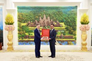 កិច្ចសហប្រតិបត្តិការកម្ពុជា-កូរ៉េ ក្នុងវិស័យសន្តិសុខ បានបោះជំហានទៅមុខប្រកបដោយទំនុកចិត្ត និងភាពប្រាកដនិយម។ នារសៀលថ្ងៃទី១០ ខែវិច្ឆិកា ឆ្នាំ២០២៥ ឯកឧត្ដមអភិសន្តិបណ្ឌិត ស សុខា ឧបនាយករដ្ឋមន្ត្រី រដ្ឋមន្ត្រីក្រសួងមហាផ្ទៃ បានទទួលជួបពិភាក្សាការងារជាមួយឯកឧត្តម ចូ ហ្យន់ (Cho Hyun) រដ្ឋមន្រ្តីក្រសួងការបរទេស នៃសាធារណរដ្ឋកូរ៉េ នៅទីស្ដីការក្រសួងមហាផ្ទៃ។