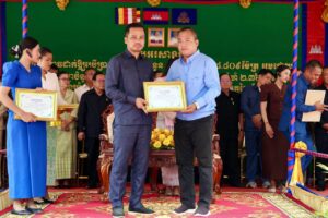 នាព្រឹកថ្ងៃពុធ ទី12 ខែវិច្ឆិកា ឆ្នាំ2025នេះ ឯកឧត្តមអភិសន្តិបណ្ឌិត ស សុខា ឧបនាយករដ្ឋមន្ត្រី រដ្ឋមន្ត្រីក្រសួងមហាផ្ទៃ និងជាប្រធានក្រុមការងាររាជរដ្ឋាភិបាលចុះមូលដ្ឋានខេត្តព្រៃវែង និងលោកជំទាវ កែ សួនសុភី ស សុខា បានអញ្ជើញជាអធិបតីពិធីសម្ពោធដាក់ឱ្យប្រើប្រាស់ផ្លូវបេតុង ប្រវែង 8.809ម៉ែត្រ បង្គោលអំពូលសូឡា ចំនួន 288ដើម និងចាក់សាបបេតុង ចំនួន 1 កន្លែង ទំហំ 2.360ម៉ែត្រការ៉េ ស្ថិតក្នុងឃុំពោធិ៍រៀង និងឃុំព្រែកអន្ទះ ស្រុកពោធិ៍រៀង ខេត្តព្រៃវែង។