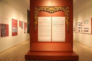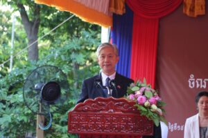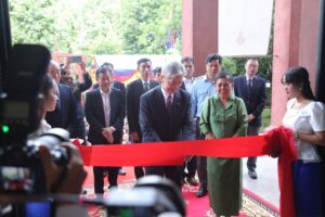 រាជធានីភ្នំពេញ ៖ ពិព័រណ៍មិនអចិន្ត្រៃយ៍មួយក្រោមប្រធានបទ “ចំណងប្រវត្តិសាស្ត្រ៖ ទំនាក់ទំនងចិនកម្ពុជា តាមរយៈសិល្បៈ និងវប្បធម៌” ត្រូវបានសម្ពោធបើកនៅសារមន្ទីរជាតិកម្ពុជា នាថ្ងៃទី១៩ ខែវិច្ឆិកា ឆ្នាំ២០២៥។ ពិធីនេះត្រូវបានរៀបចំឡើងក្រោមអធិបតីភាពលោកជំទាវបណ្ឌិតសភាចារ្យ ភឿង សកុណា រដ្ឋមន្ត្រីក្រសួងវប្បធម៌ និងវិចិត្រសិល្បៈ និងឯកឧត្តម Wang Wenbin ឯកអគ្គរដ្ឋទូតវិសាមញ្ញ និងពេញសមត្ថភាពនៃសាធារណរដ្ឋប្រជាមានិតចិនប្រចាំនៅកម្ពុជា។