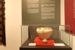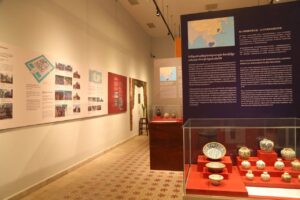សមុច្ច័យដែលដាក់តាំងបង្ហាញនេះ គឺជាវត្ថុបុរាណទាក់ទងនឹងសិល្បៈចិន ដែលសារមន្ទីរជាតិកម្ពុជាបានរក្សាទុកជាច្រើនឆ្នាំមកហើយ។ សមុច្ច័យទាំងនោះរួមមាន៖ សំរឹទ្ធ ,កុលាលភាជន៍, គ្រឿងលម្អសំណង់ពីឈើតាមផ្ទះ ឬទីសក្ការបូជាមួយចំនួនទៀត៕
