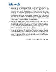 នេះបើយោងតាមសេចក្តីថ្លែងការណ៍នៃអង្គការអ្នកប្រជាធិបតេយ្យនិយមកណ្តាលអន្តរជាតិ (CDI-IDC) នាថ្ងៃទី២២ ខែវិច្ឆិកា ឆ្នាំ២០២៥នេះ។
