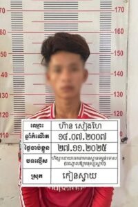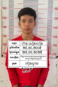 ១.ឈ្មោះ ហៀន សៀងហៃ ភេទប្រុស អាយុ១៦ឆ្នាំ ជនជាតិខ្មែរ មុខរបរកសិករ មានលំនៅភូមិរាំងដេក ឃុំគគីរធំ ស្រុកកៀនស្វាយ ខេត្តកណ្ដាល (អ្នកឌុប ឃាត់ខ្លួន) ។
