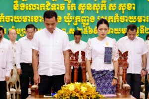 នាព្រឹកថ្ងៃសៅរ៍ ទី29 ខែវិច្ឆិកា ឆ្នាំ2025នេះ ឯកឧត្តមអភិសន្តិបណ្ឌិត ស សុខា ឧបនាយករដ្ឋមន្ត្រី រដ្ឋមន្ត្រីក្រសួងមហាផ្ទៃ និងលោកជំទាវ កែ សួនសុភី ស សុខា ព្រមទាំងវត្តមានដ៏ខ្ពង់ខ្ពស់លោកជំទាវ ញ៉ែម សាខន ស ខេង បានអញ្ជើញជាអធិបតីពិធីបុណ្យបញ្ចុះខណ្ឌសីមាព្រះវិហារថ្មី និងឆ្លងសមិទ្ធផលនានានៅក្នុងវត្តកំចាយមារ ស្ថិតក្នុងភូមិកំចាយមារខាងជើង ឃុំក្រញូង ស្រុកកំចាយមារ ខេត្តព្រៃវែង។