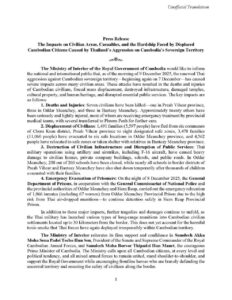 The Ministry of Interior of the Royal Government of Cambodia has issued a press statement regarding the impacts on civilian areas, civilian casualties, and the hardships faced by displaced citizens resulting from Thailand’s acts of aggression against Cambodia’s sovereign territory!