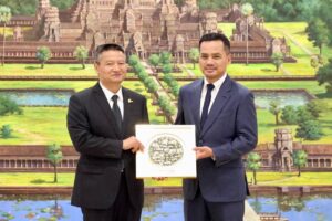 នារសៀលថ្ងៃអង្គារ ទី9 ខែធ្នូ ឆ្នាំ2025នេះ ឯកឧត្តមអភិសន្តិបណ្ឌិត ស សុខា ឧបនាយករដ្ឋមន្ត្រី រដ្ឋមន្ត្រីក្រសួងមហាផ្ទៃ បានទទួលជួបពិភាក្សាការងារជាមួយលោក យូ សៅវិន (YOU Xiaowen) អគ្គលេខាធិការ នៃមជ្ឈមណ្ឌលសហប្រតិបត្តិការសន្តិសុខ និងសមាហរណកម្មអនុវត្តច្បាប់មេគង្គ-ឡានឆាង (LMLECC) និងគណៈប្រតិភូ នៅសាលទទួលភ្ញៀវអន្តរជាតិ នៃទីស្តីការក្រសួងមហាផ្ទៃ។