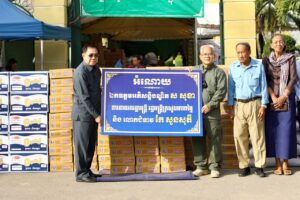 ខេត្ត និងអំណោយឯកឧត្តមអភិសន្តិបណ្ឌិត ស សុខា និងលោកជំទាវ កែ សួនសុភី ដែលឯកឧត្តម អ៊ូ វណ្ណា បានប្រគល់ជូនរដ្ឋបាលខេត្តទាំង៥ នាឱកាសនោះរួមមាន៖ ខេត្តបាត់ដំបង បន្ទាយមានជ័យ ឧត្តរមានជ័យ ព្រះវិហារ និងខេត្តពោធិ៍សាត់ ដោយក្នុងមួយខេត្តៗទទួលបាន ៖ អង្ករ ចំនួន ៥តោន មី ចំនួន ១០០កេសធំ ស្មើ ៦០០កេសតូច ត្រីខកំប៉ុង ចំនួន ១០០កេស និងគុយទាវ ចំនួន ៥០កេសធំ ស្មើ ២០០កេសតូច៕