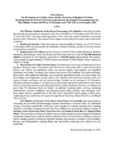 The Ministry of Interior of the Royal Government of Cambodia issues a Press Release on the Impacts on Civilian Areas and the Protection of Displaced Civilians Resulting from the War of Territorial Aggression by the Bangkok Government and the Thai Military From 6:00 PM on 15 December until 7:00 AM on 16 December 2025.