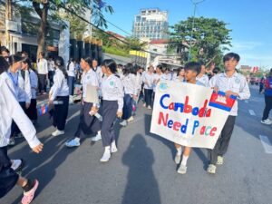 សិស្សានុសិស្ស និងយុវជន ព្រមទាំងប្រជាពលរដ្ឋខ្មែរជាច្រើននៅតំបន់វិមានឯករាជ្យ បាននិងកំពុងរង់ចាំដើម្បីត្រៀមចូលរួមកម្មវិធី «ដើរដើម្បីសន្ដិភាព – March for Peace» ដែលចាប់ផ្ដើមឡើងនារសៀលនេះ ក្នុងគោលបំណងបង្ហាញស្មារតីស្រឡាញ់សន្ដិភាពរបស់ព្រះរាជាណាចក្រកម្ពុជា ជាពិសេសជំរុញឲ្យមានការគោរពបទឈប់បាញ់ និងកិច្ចព្រមព្រៀងសន្ដិភាព សំដៅសម្រេចបានសន្ដិភាព រវាងព្រះរាជាណាចក្រកម្ពុជា និងព្រះរាជាណាចក្រថៃ។