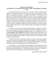 Ministry of Interior | Statement of Condemnation on Thailand’s War of Aggression Against the Sovereignty of the Kingdom of Cambodia!