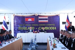 កិច្ចប្រជុំពិសេសលើកទី៣ របស់គណៈកម្មាធិការព្រំដែនទូទៅកម្ពុជា-ថៃ (GBC) ដែលបានប្រព្រឹត្តទៅនាព្រឹកនេះ ហើយបានបញ្ចប់ទៅនៅវេលាម៉ោង ១០:២០នាទី នៅច្រកអន្តរជាតិព្រំ-ផាកកាត ខេត្តប៉ៃលិន ប្រទេសកម្ពុជា ទល់នឹងខេត្តចន្ទបុរី ប្រទេសថៃ ក្រោមការសង្កេតការណ៍ពីក្រុមអ្នកសង្កេតការណ៍អាស៊ាន (AOT) ប្រចាំកម្ពុជា និងថៃ ដែលដឹកនាំដោយ ឯកឧត្តម នាយឧត្តមសេនីយ៍ ទៀ សីហា ឧបនាយករដ្ឋមន្រ្តី រដ្ឋមន្រ្តីក្រសួងការពារជាតិ នៃព្រះរាជាណាចក្រកម្ពុជា និងឯកឧត្តម ណាត់ថាក់ផុន ណាកផានីត រដ្ឋមន្រ្តីក្រសួងការពារជាតិ នៃព្រះរាជាណាចក្រថៃ។