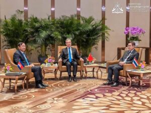 នាព្រឹកថ្ងៃទី29 ខែធ្នូ ឆ្នាំ2025នេះ ឯកឧត្តម ប្រាក់ សុខុន ឧបនាយករដ្ឋមន្ត្រី និងរដ្ឋមន្ត្រីការបរទេស និងសហប្រតិបត្តិការអន្តរជាតិ នៃព្រះរាជាណាចក្រកម្ពុជា បានចូលរួមកិច្ចប្រជុំត្រីភាគី ជាមួយឯកឧត្តម វ៉ាង យី រដ្ឋមន្ត្រីការបរទេស នៃសាធារណរដ្ឋប្រជាមានិតចិន និង ឯកឧត្តម សីហៈសក្តិ ភួងកេតកែវ រដ្ឋមន្ត្រីការបរទេសនៃព្រះរាជាណាចក្រថៃ នៅខេត្តយូណាន ប្រទេសចិន។
