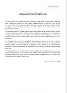 សេចក្តីថ្លែងការណ៍របស់ក្រសួងវប្បធម៌ និងវិចិត្រសិល្បៈ ប្រឆាំងចំពោះគ្រប់សកម្មភាពរបស់ប្រទេសថៃនៅប្រាសាទតាក្របី Statement of the Ministry of Culture and Fine Arts Protesting All Actions by Thailand at Ta Krabei Temple