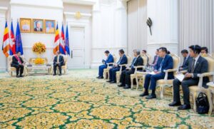 នាព្រឹកថ្ងៃចន្ទ ទី26 ខែមករា ឆ្នាំ2026នេះ សម្ដេចមហាបវរធិបតី ហ៊ុន ម៉ាណែត នាយករដ្ឋមន្ដ្រីនៃកម្ពុជា អញ្ជើញជួបជាមួយ ឯកឧត្តមបណ្ឌិត Linkham Douangsavanh រដ្ឋមន្ត្រីក្រសួងកសិកម្ម និងបរិស្ថាន នៃសាធារណរដ្ឋប្រជាធិបតេយ្យប្រជាមានិតឡាវ ក្នុងជំនួបសម្តែងការគួរសម និងពិភាក្សាការងារនៅវិមានសន្តិភាព។