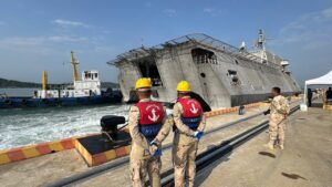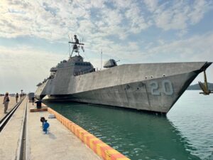 នាព្រឹកថ្ងៃទី28 ខែមករា ឆ្នាំ2026នេះ នាវាកងទ័ពជើងទឹកសហរដ្ឋអាមេរិក USS Cincinnati (LCS 20) បានចាកចេញកំពង់ផែមូលដ្ឋានសមុទ្ររាមហើយ បន្ទាប់ពីបានចូលចតបំពេញបេសកកម្មដោយជោគជ័យរយៈពេល5ថ្ងៃ នៅព្រះរាជាណាចក្រកម្ពុជា។