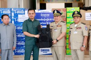 ២. អំណោយប្រគល់ជូនស្នងការដ្ឋាននគរបាលខេត្តសៀមរាប រួមមាន៖ អាវក្រោះ ចំនួន ១០០អាវ, អាវចរាចរណ៍ ចំនួន ៥០០អាវ, ស្លាកអាវអក្សរ Police ចំនួន ៥០០ស្លាក និងខ្សែក្រវ៉ាត់នគរបាល ចំនួន ១០០ខ្សែ៕