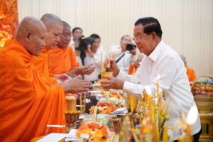 តាមរយៈអំណាច នៃផល្លានិសង្ឃ កើតចេញពី ពិធីបុណ្យទក្ខិណានុប្បទានក្នុងថ្ងៃនេះ សម្តេចព្រះសង្ឃនាយក,សម្តេច ព្រះសង្ឃនាយករង,សម្តេច ព្រះមហាថេរ, ព្រះរាជាគណៈ និងព្រះថេរានុថេរៈគ្រប់ព្រះអង្គ សូមលើកថ្វាយ គុណបុណ្យព្រះរតនត្រៃ និងវត្ថុសក្តិសិទ្ធក្នុងលោក និងទេវតាថែរក្សាទឹកដី នៃព្រះរាជាណា ចក្រកម្ពុជា សូមជួយបីបាច់រក្សា និងប្រោសព្រហ្មប្រសិទ្ធិពរជ័យ សិរីមង្គលគ្រប់ប្រការ ជូនសម្តេច អគ្គមហាសេនាបតីតេជោ និង សម្តេច កិត្តិព្រឹទ្ធបណ្ឌិត ព្រមទាំងក្រុមគ្រួសារ សូមមានសុខភាពល្អ ជន្មាយុយឺនយូរ ស្ថិតនៅជាម្លប់ដ៍ត្រជាក់ សំរាប់កូនចៅ ជំនាន់បច្ចុប្បន្ន និងជំនាន់ក្រោយៗទៀត ជាពិសេសដើម្បីជាសរសរស្តម្ភ រួមចំណែកក្នុងការអភិវឌ្ឍប្រទេសជាតិ និងស្ថិតនៅជាគ្រឹះដ៍រឹងមាំក្នុងការថែរក្សា ការពារសុខសន្តិភាពជាយូរអង្វែងតរៀងទៅ៕