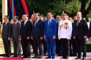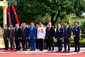 នាព្រឹកថ្ងៃសៅរ៍ ទី7 ខែកុម្ភៈ ឆ្នាំ2026នេះ ឯកឧត្តមអភិសន្តិបណ្ឌិត ស សុខា ឧបនាយករដ្ឋមន្ត្រី រដ្ឋមន្ត្រីក្រសួងមហាផ្ទៃ បានអញ្ជើញចូលរួមអមដំណើរសម្តេចអគ្គមហាសេនាបតីតេជោ ហ៊ុន សែន ប្រធានព្រឹទ្ធសភា នៃព្រះរាជាណាចក្រកម្ពុជា និងជាប្រធានគណបក្សប្រជាជនកម្ពុជា ទទួលបដិសណ្ឋារកិច្ចស្វាគមន៍ឯកឧត្តមបណ្ឌិត ថងលុន ស៊ីសុលី (Thongloun Sisoulith) អគ្គលេខាធិការបក្សប្រជាជនបដិវត្តន៍ឡាវ និងជាប្រធានរដ្ឋ នៃសាធារណរដ្ឋប្រជាធិបតេយ្យប្រជាមានិតឡាវ នៅវិមានសាមគ្គីភាព នៃព្រឹទ្ធសភាជាតិកម្ពុជា រាជធានីភ្នំពេញ។