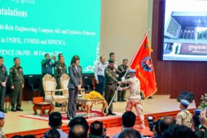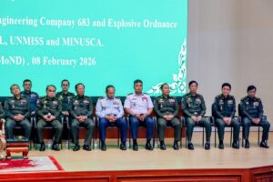 នាព្រឹកថ្ងៃទី8 ខែកុម្ភៈ ឆ្នាំ2026នេះ ឯកឧត្តម នាយឧត្តមសេនីយ៍ ទៀ សីហា ឧបនាយករដ្ឋមន្ត្រី រដ្ឋមន្ត្រីក្រសួងការពារជាតិ និងលោកស្រី Vladanka Andreeva អ្នកសម្របសម្រួលអង្គការសហប្រជាជាតិ ប្រចាំព្រះរាជាណាចក្រកម្ពុជា ជាអធិបតីភាពក្នុងពិធីជូនដំណើរកងរាជអាវុធហត្ថលេខ874 កងអនុសេនាធំវិស្វកម្មពហុជំនាញលេខ683 និងកងកម្ទេចគ្រឿងផ្ទុះលេខ98-ទី4 ចូលរួមបំពេញបេសកកម្មរក្សាសន្តិភាពរបស់អង្គការសហប្រជាជាតិ នៅសាធារណរដ្ឋស៊ូដង់ខាងត្បូង លីបង់ និងអាហ្វ្រិកកណ្តាល ដែលប្រព្រឹត្តទៅនៅក្រសួងកាពារជាតិ ។
